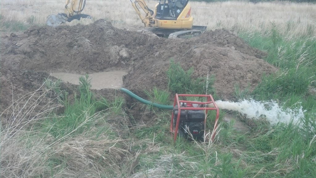 Pumping out the hole full of water. Notice the greenery in the midst of the dry field grass |